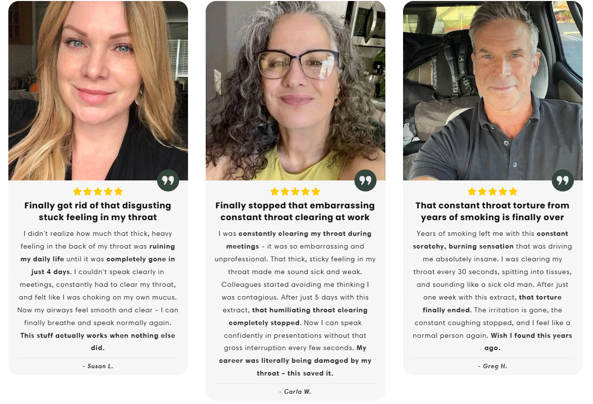 Most people feel relief from that stuck, scratchy throat feeling within 2-4 days. 97% of our customers report noticeable improvement by day 3. Unlike other products that take weeks (if they work at all), our premium mullein extract gets to work immediately clearing mucus and soothing irritation. You'll know it's working when you stop constantly clearing your throat.