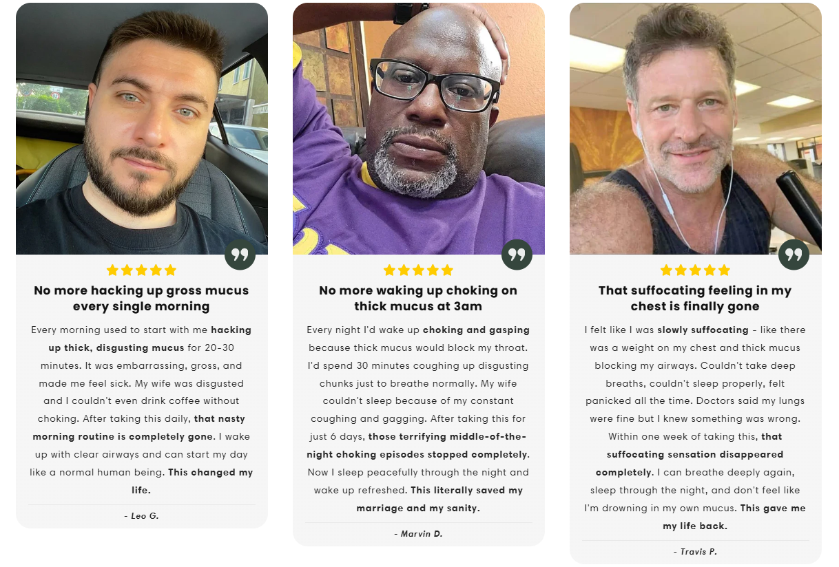 We're so confident you'll get relief that we offer a 30-day money-back guarantee. If you don't experience clearer breathing, reduced throat irritation, and easier mucus clearance, simply return the bottle for a full refund - no questions asked. We've helped 50,000+ people already, and we're confident you'll be next.